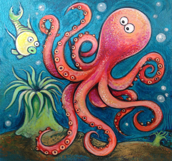 She's been enjoying time with her granddaughter and grandson, travelling, and doing many other things, including painting with acrylics! You can see some of her art below.