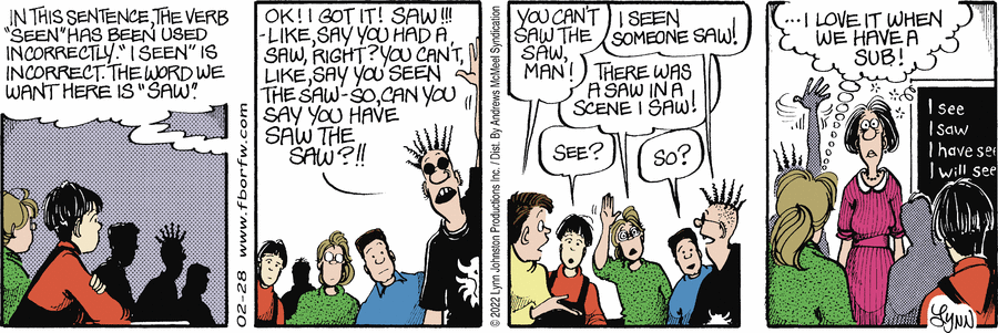 Lynn's Comments: Did you catch the error here? I show John with the bottle of cleaning solution in his right hand, but it switches to his left in the last panel.