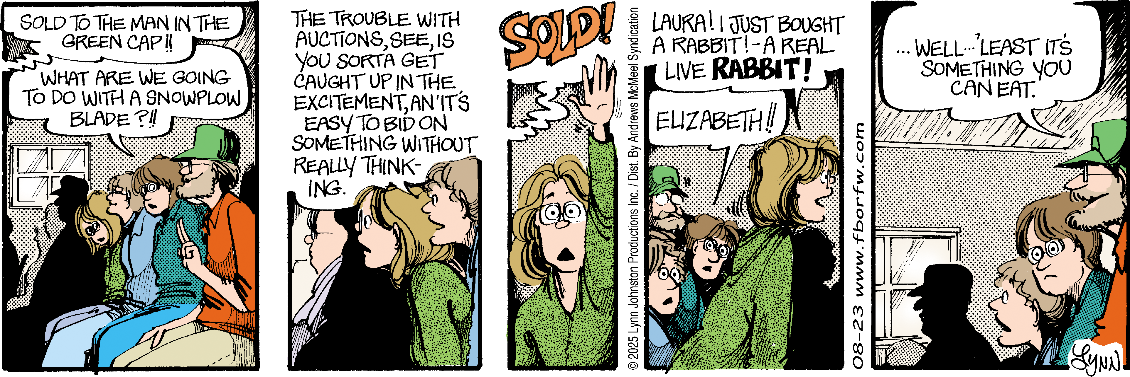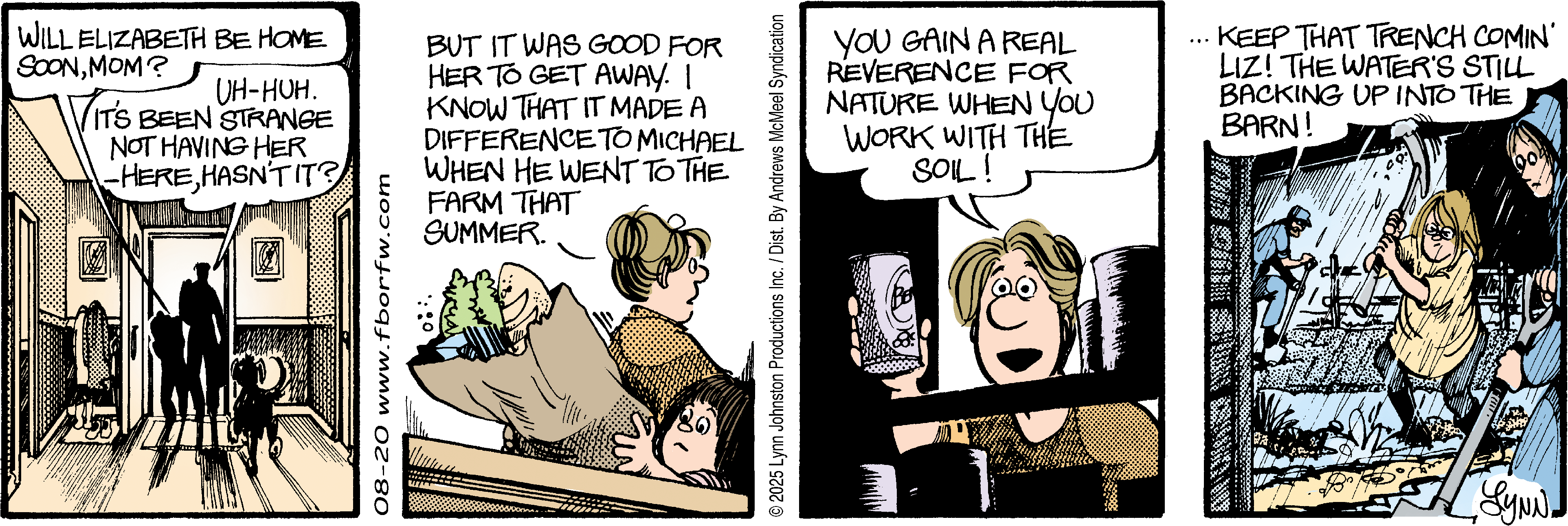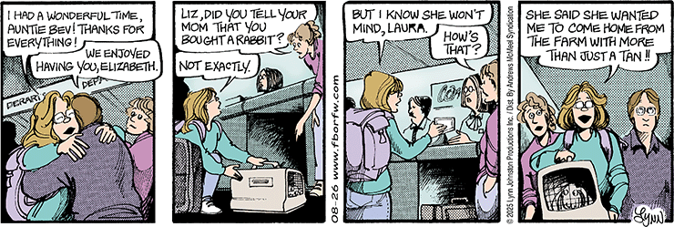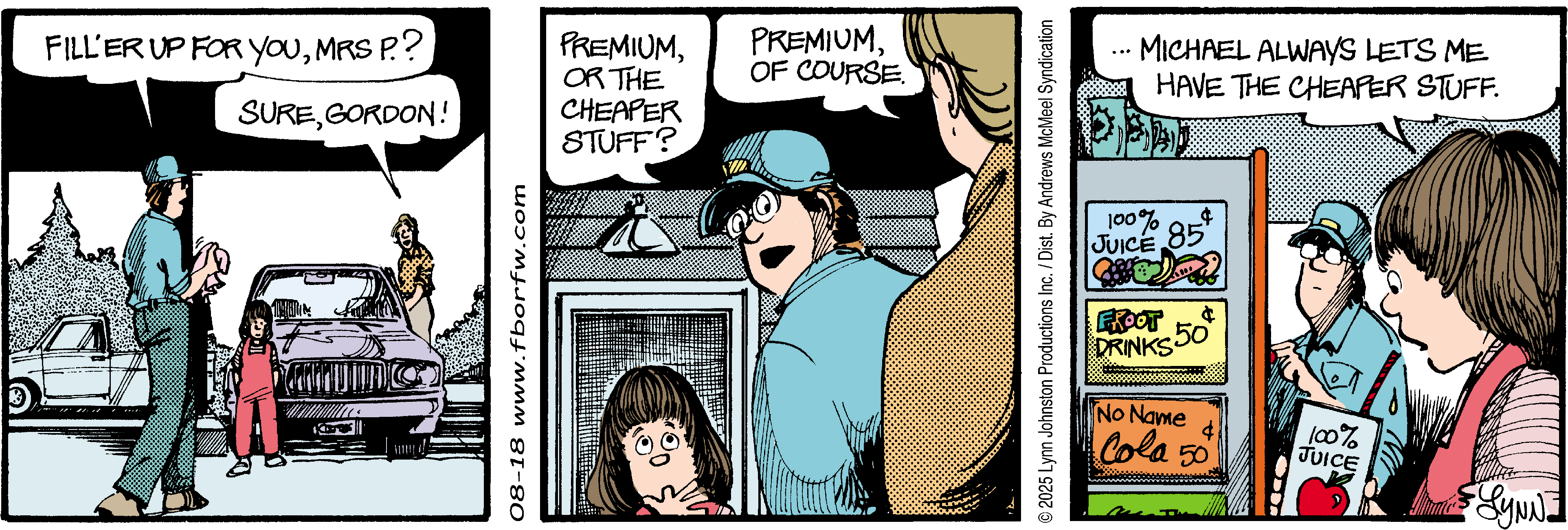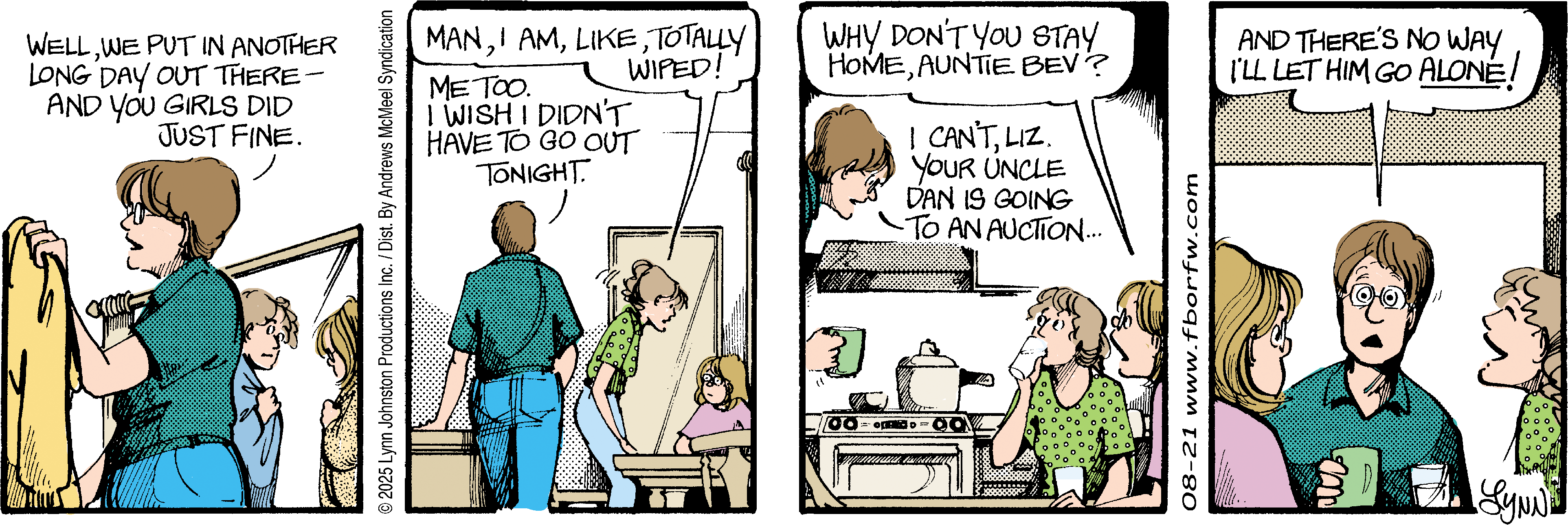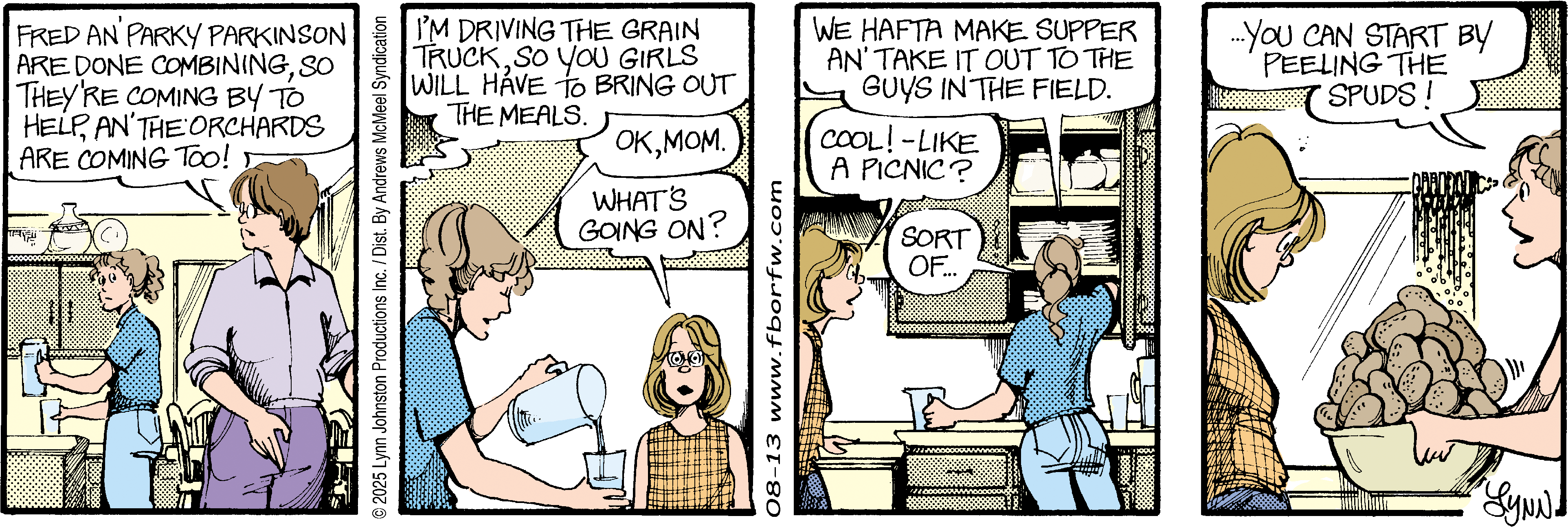 Lynn's Comments: All the names here refer to friends and family who lived near the farm. It was fun to know that they’d be talking about the comic strip over morning coffee at the local diner.