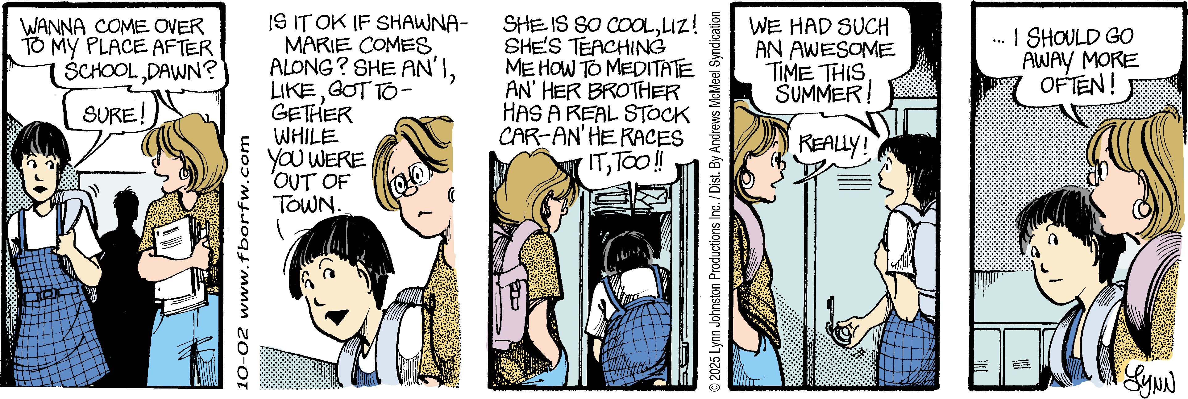 Lynn's Comments: I tried to explore the complexities of having a “best friend” and friendships in general. This is another area I could have worked with a bit more but time and space were limited. Drawing new characters was also a challenge—I used photos from magazines to help me come up with new faces.