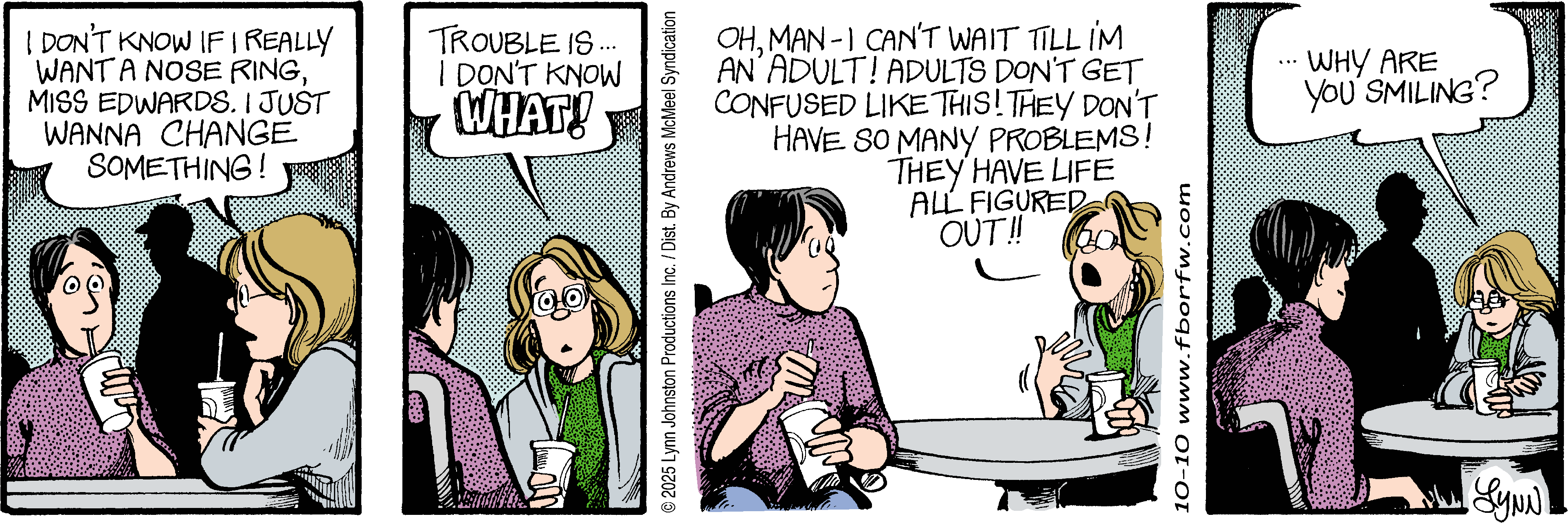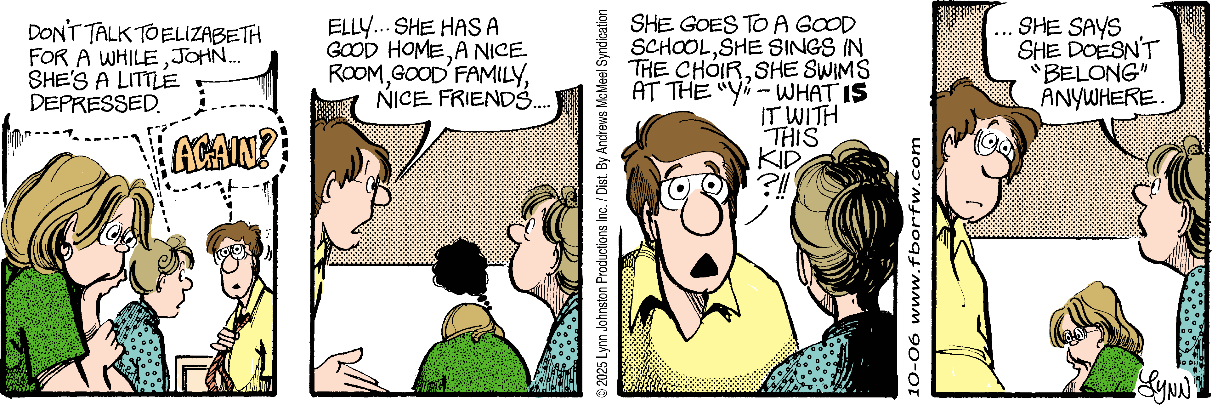 Lynn's Comments: I’m looking at this again as someone they now call “elderly.” (Aaaaughhhh!) I was in my 40s when I did this strip, and from my present vantage point, I can’t imagine what these ladies are grousing about.