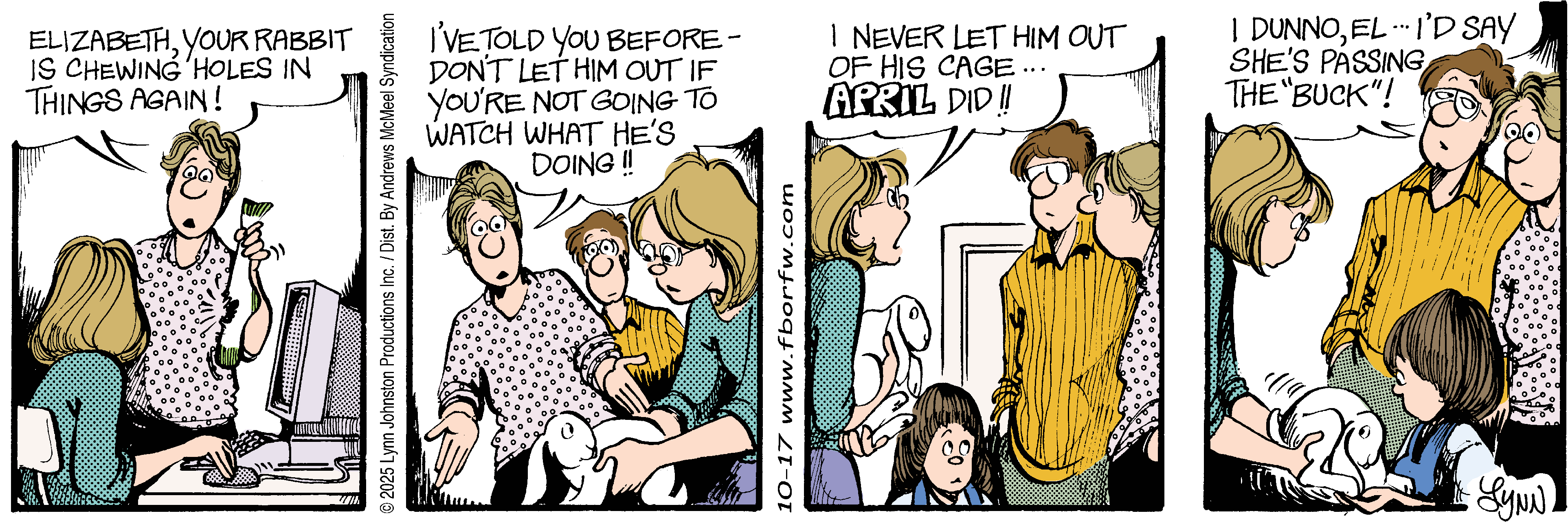 Lynn's Comments: I hoped enough folks would know that a “buck” is a male rabbit. Some gags were a little obscure!