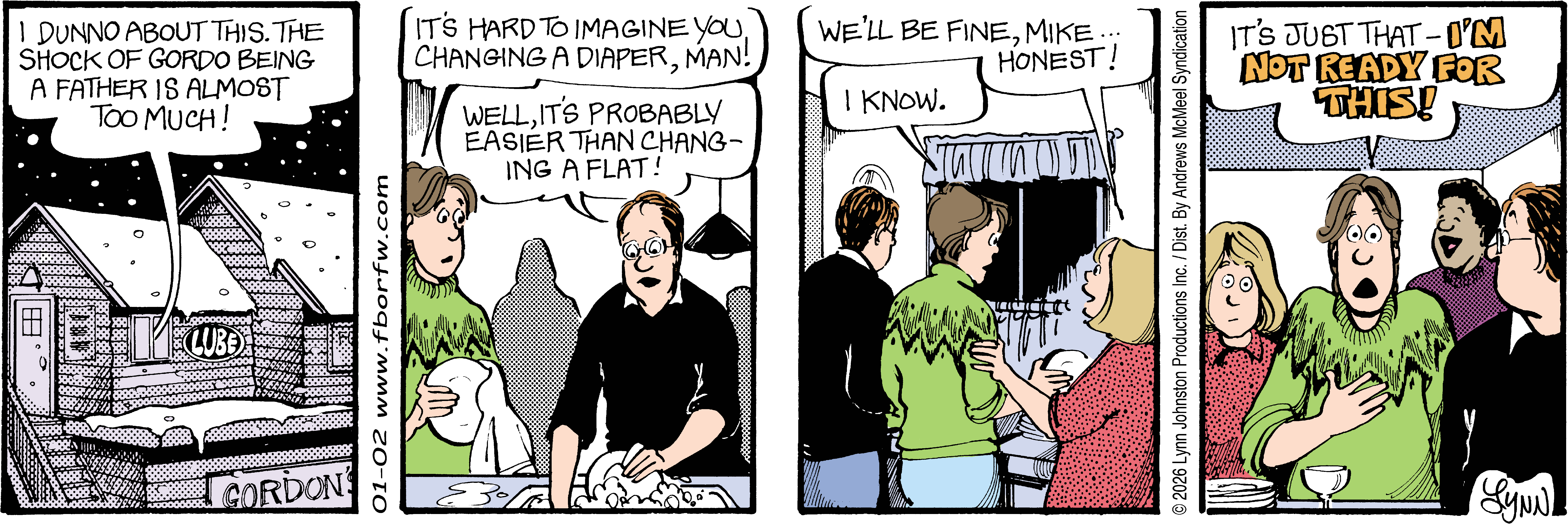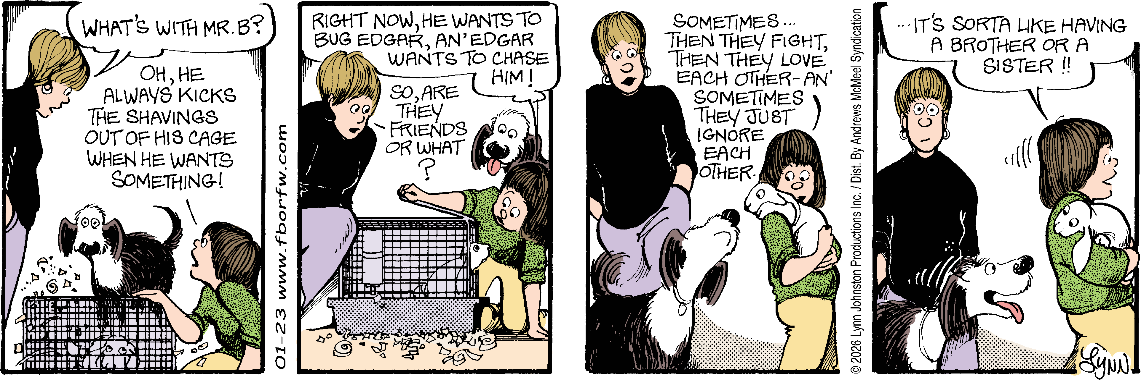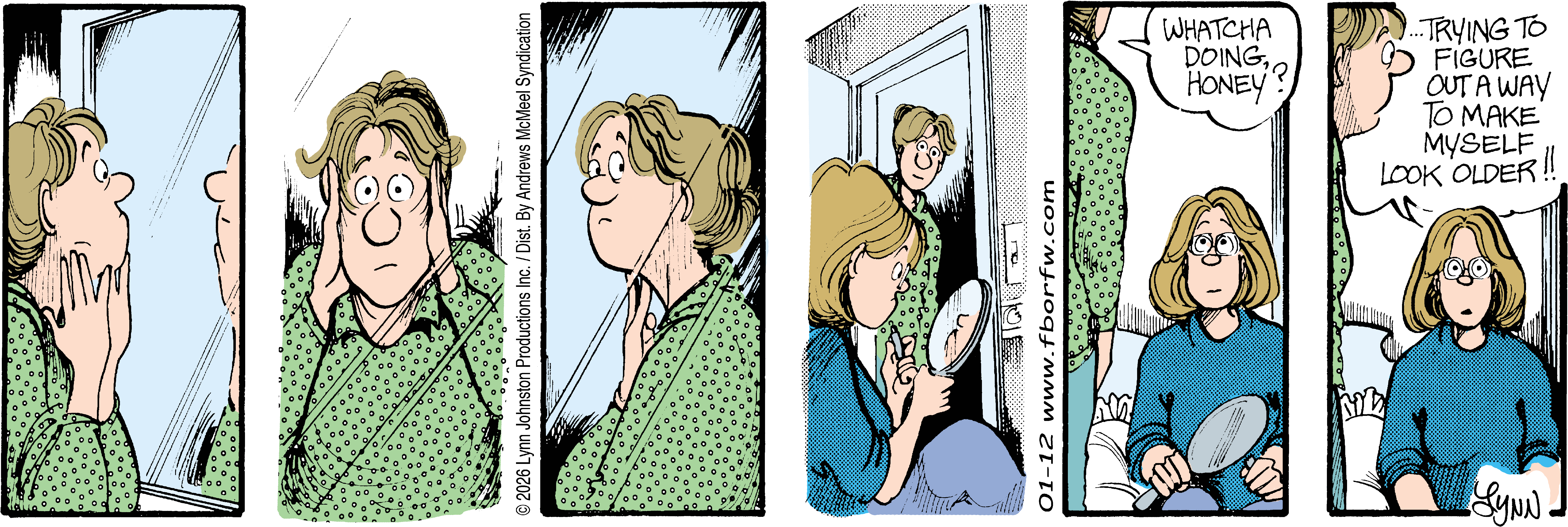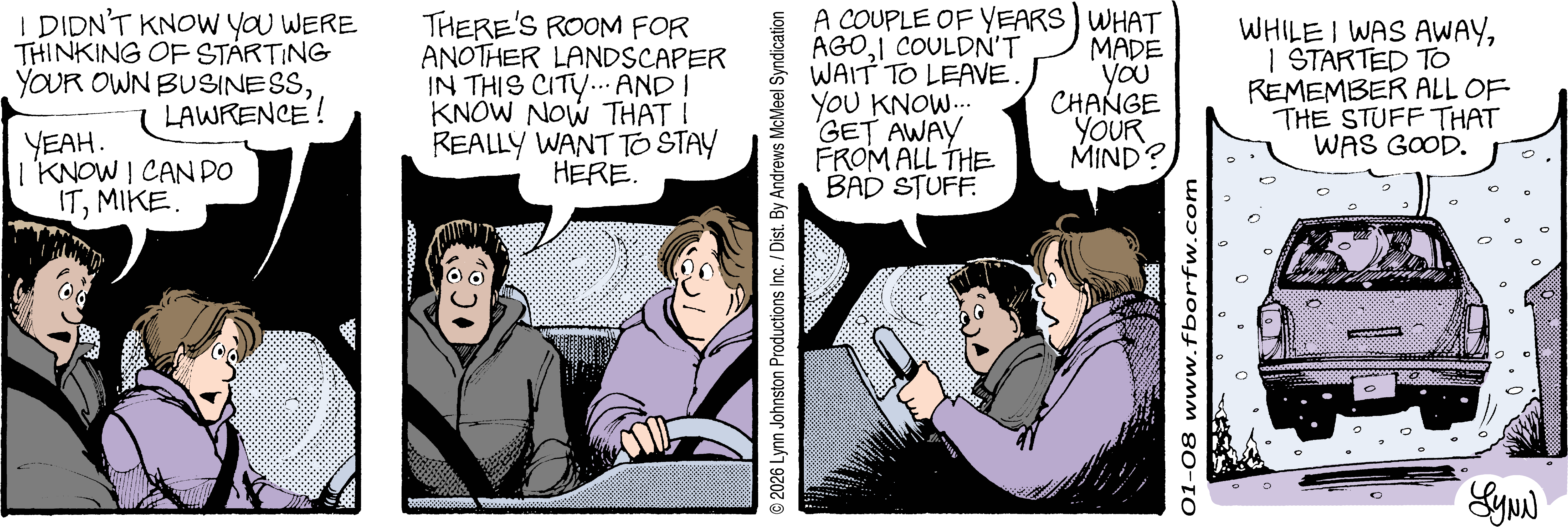 Lynn's Comments: Changing a character’s hair was always a big deal. I figured it wouldn’t make sense for teenagers to not go through some experimentation, so both Elizabeth and Michael had some different “looks” throughout the latter part of the strip. Elly and John, however, stayed pretty much the same.