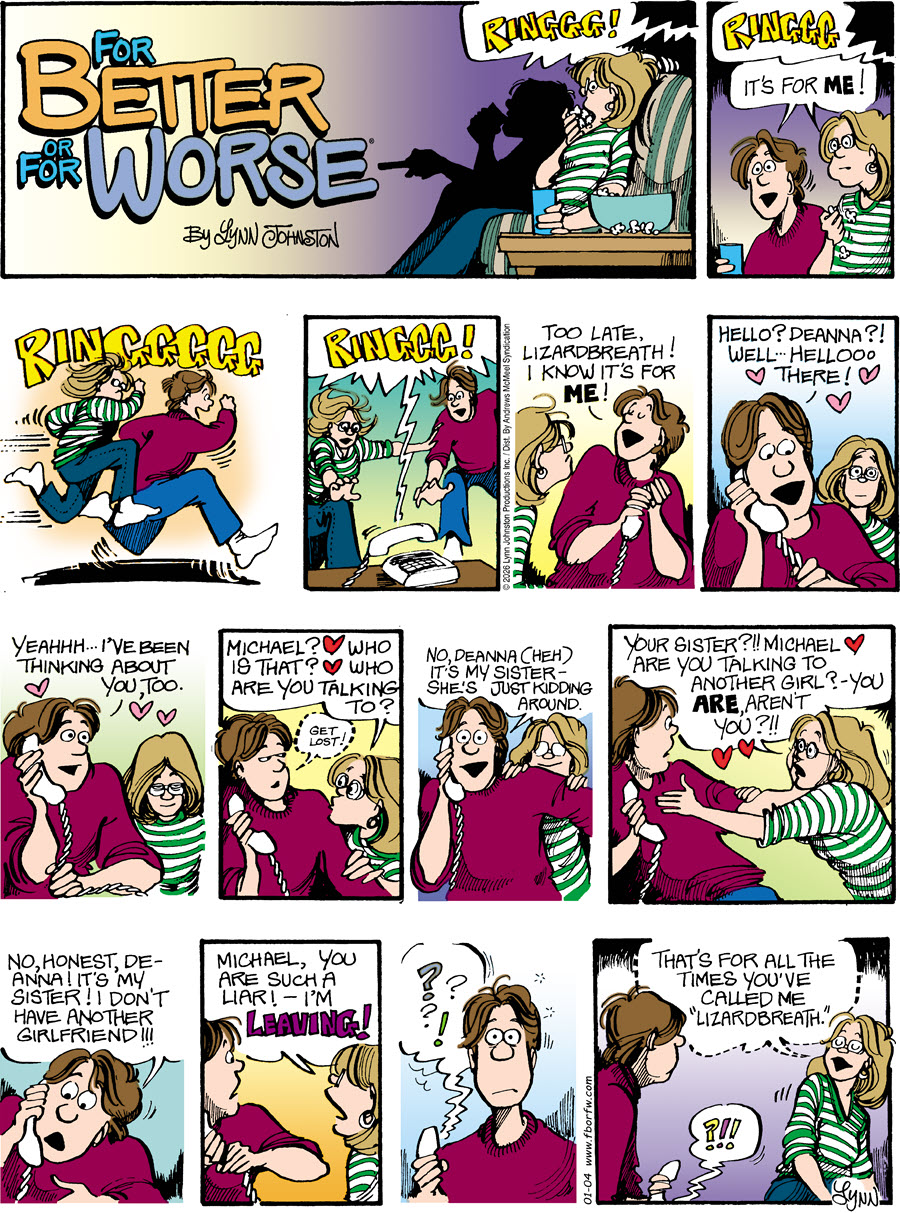 Lynn's Comments: I did this to my brother. It was one of those spur-of-the-moment things that seemed like a good idea at the time. His girlfriend, on the other end of the line, was convinced that he had another girl with him. I did such a good job of cooing into the phone, he had a hard time convincing her that it was his sister playing a prank. I paid dearly later on…but it was worth it!