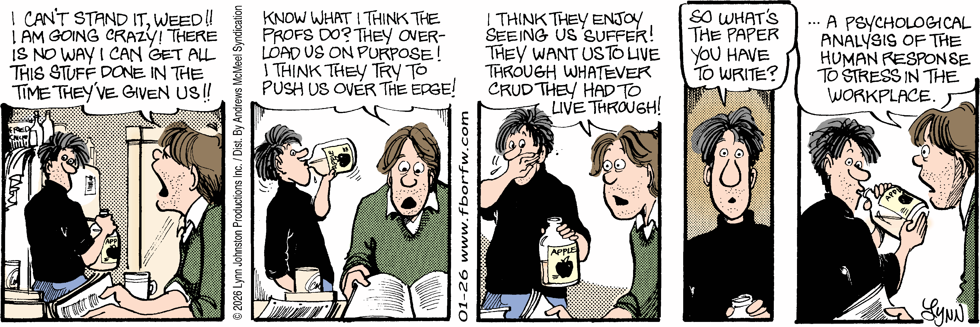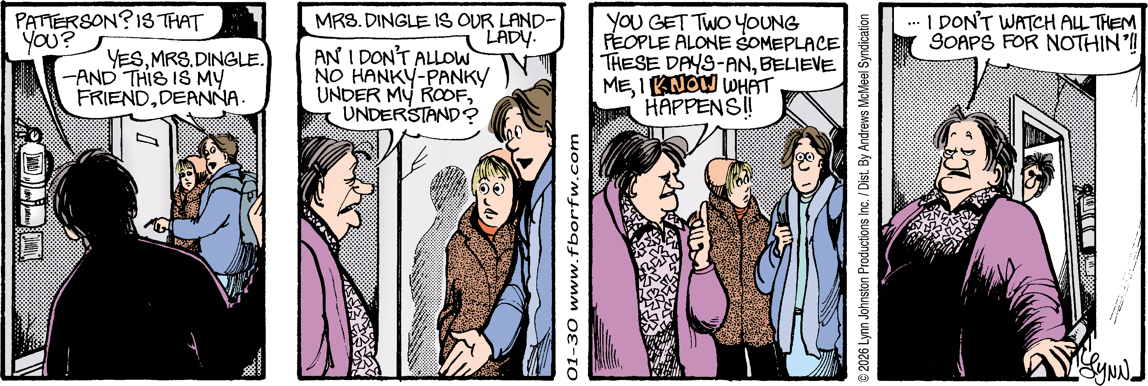 Lynn's Comments: I think this is the first time “Ned” appeared in the strip. It was against the rules to show a naked backside in the “funny papers,” so, naturally, I wanted to test the waters. Stuck to the window of Mike and Weed’s apartment was a tiny, naked plastic man. Ned appeared regularly and was never “caught” by an editor.